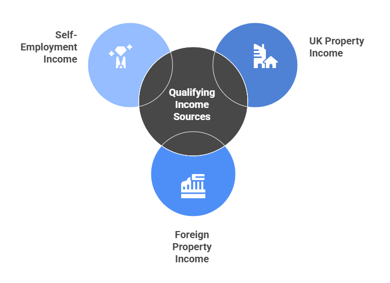 For MTD ITSA, HMRC counts three main types of qualifying income: UK property income, Foreign property income, and Self-employment income from any trade or profession.