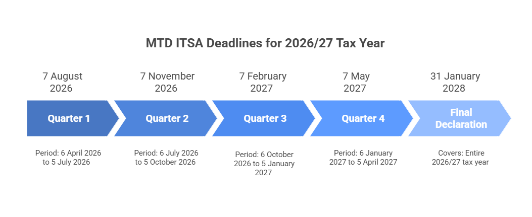 Each quarterly update must be submitted by 7th of the month after the quarter ends. Miss a deadline, and you face penalties under HMRC's new points-based system (which we'll discuss in Step 5).