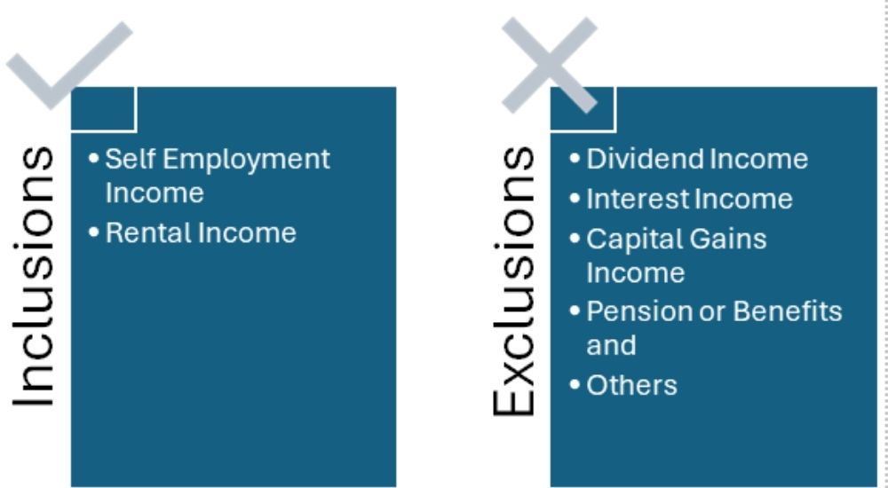 Qualifying Income includes self-employment and property rental income, but excludes dividends, interest, and pensions