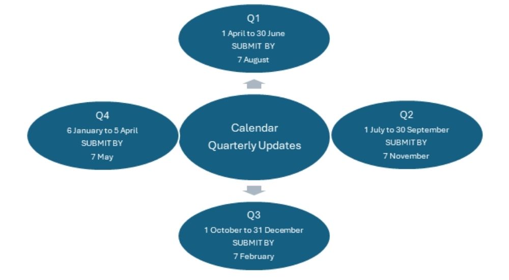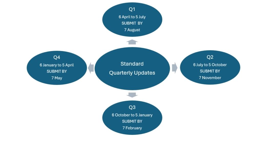 Alternatively, you can apply to use standard calendar quarters. This option aligns with the financial year for many businesses.