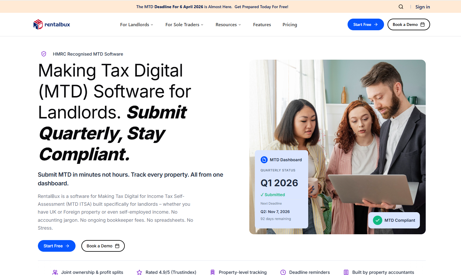 RentalBux offers a user-friendly, HMRC-recognised MTD-compatible software designed specifically for landlords.