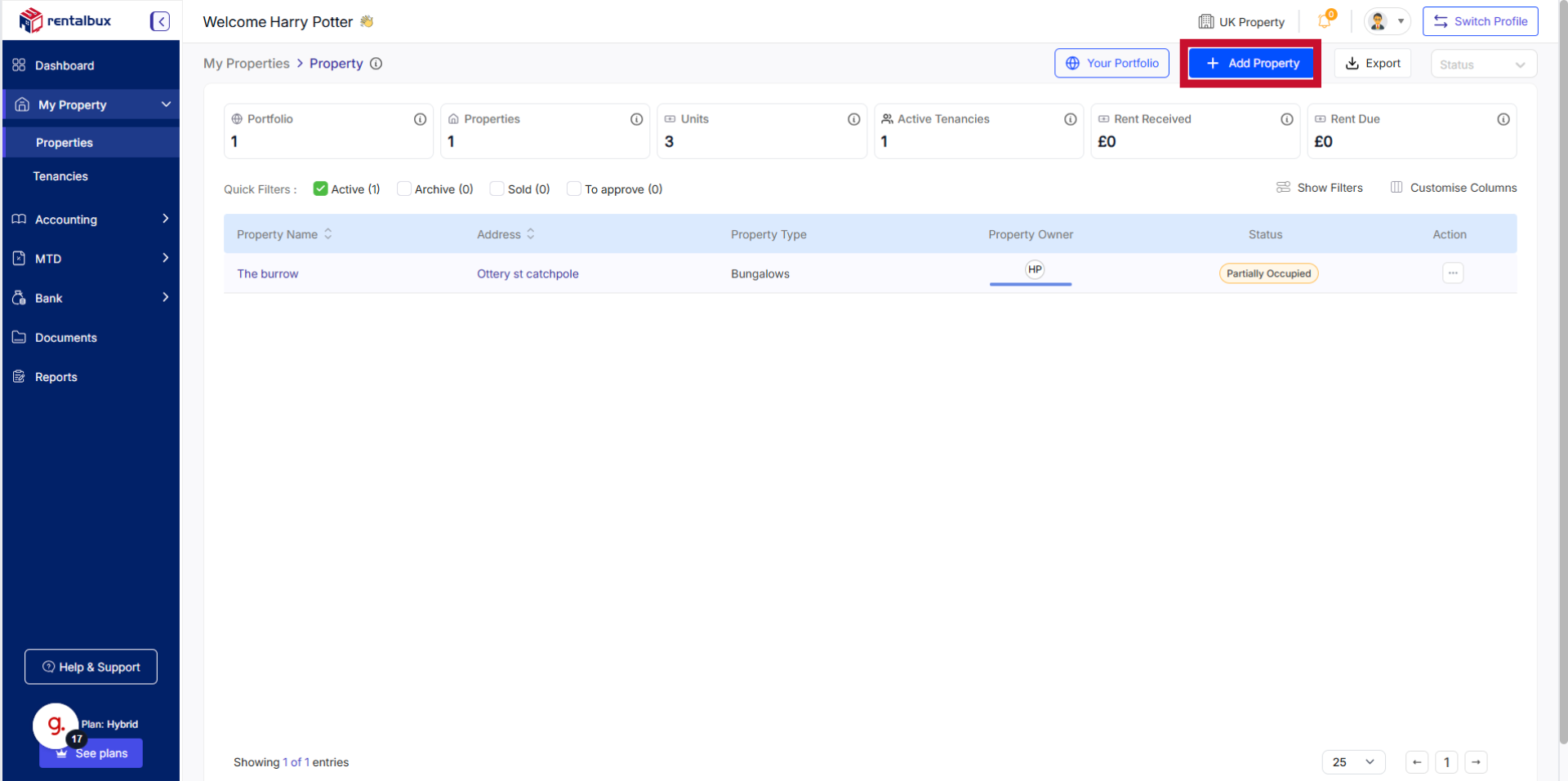 If this is your first time here, you'll see a welcome screen saying ‘Welcome to Property Management’ with a video guide and button saying Add Property. Click it.