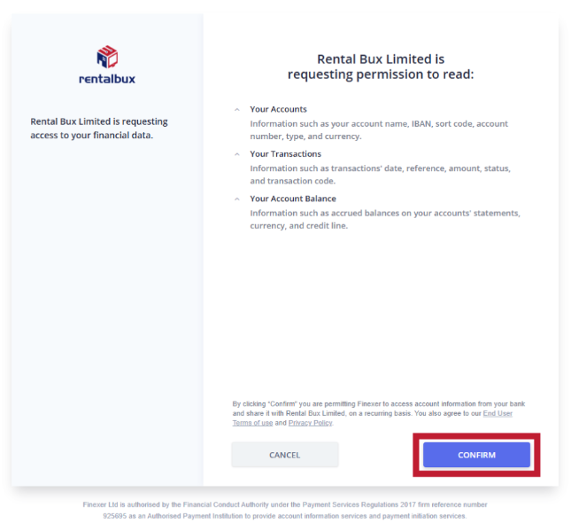 You'll be redirected back to RentalBux. Your bank will appear as Connected in your bank settings.