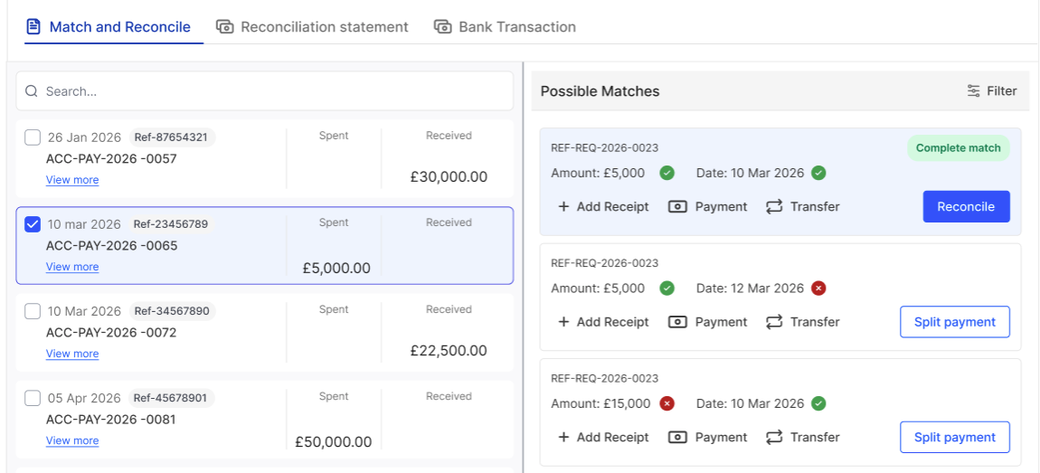 Click Confirm Import. Your transactions appear in the reconciliation queue.