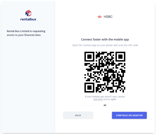 Scan shown QR code with your banking app or continue logging in with your browser.
