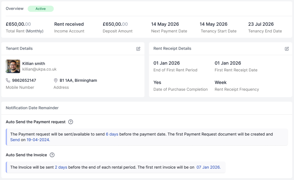 When a tenant moves out, and a new one moves in, the changeover is straightforward — close the old tenancy record, set up the new one, and your financial tracking continues seamlessly.