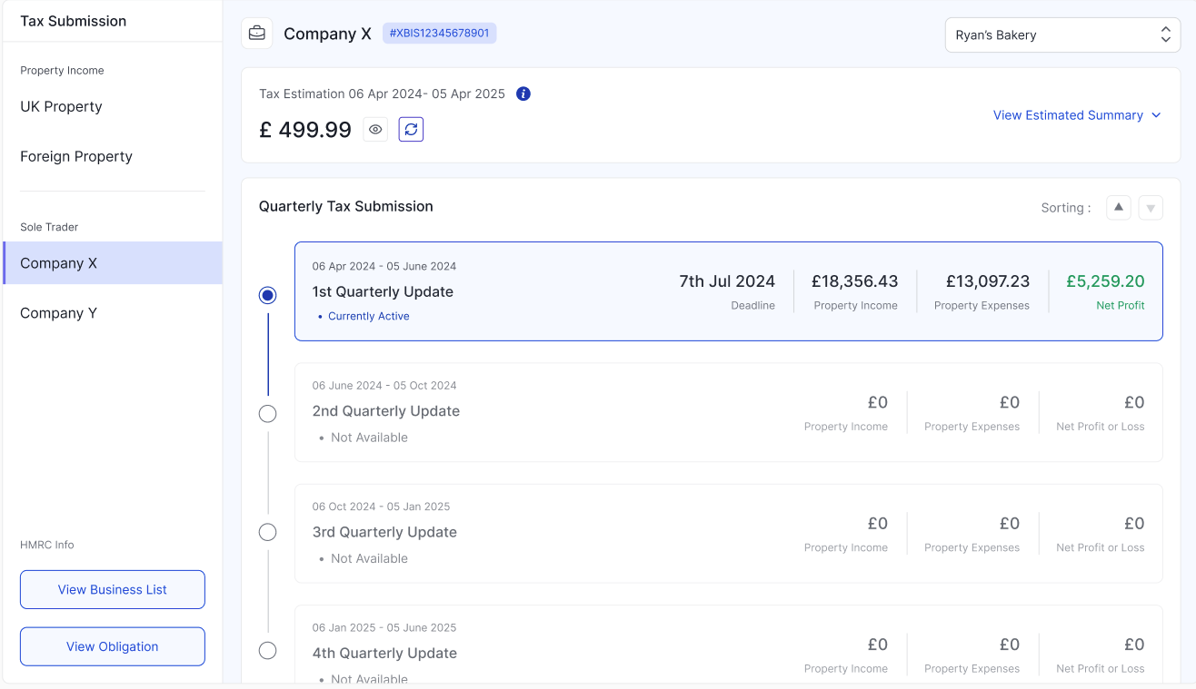 If you have both UK Property and Sole Trader income sources, RentalBux generates a separate quarterly update for each. You'll see both in the Tax Submission screen. Review and submit each one — you can do them in either order, and both must be submitted before their respective deadlines.