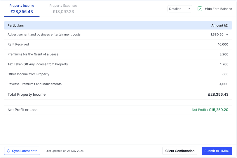 4. You'll see a summary of the figures that will be sent to HMRC: